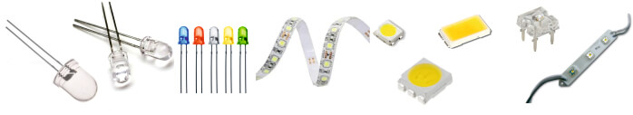 3mm • 5mm • 10mm • todos los colores • tipo piraña • alto brillo • en tiras • en grupos de 3 • tipo SMD