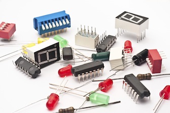 resistencias • capacitores • diodos • circuitos integrados • plaquetas • LEDs • transistores bipolares • transistores FETS